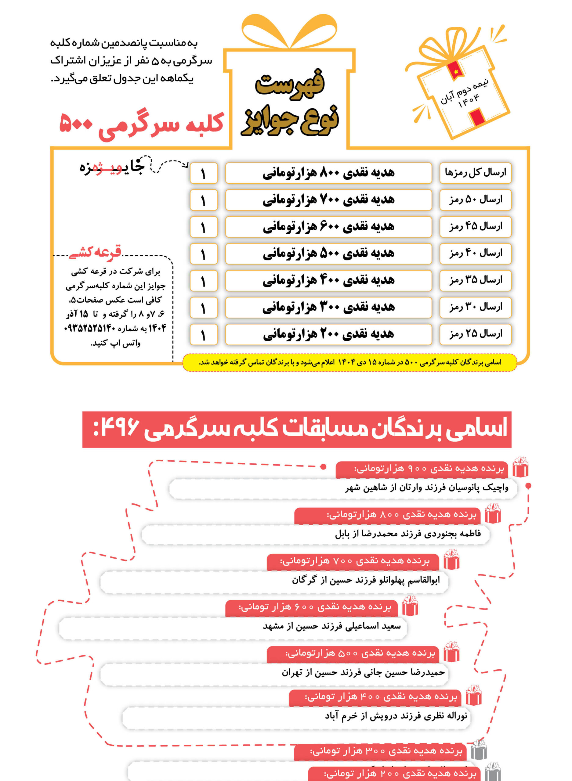 نکات خواندنی کلبه سرگرمی شماره ۵۰۰