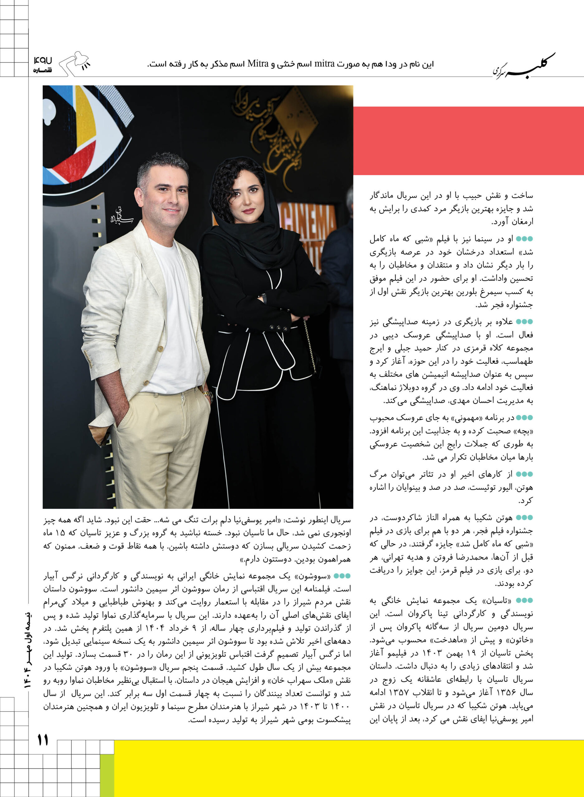 مصاحبه عکس جلد کلبه سرگرمی 497 - کلبه و کولاک