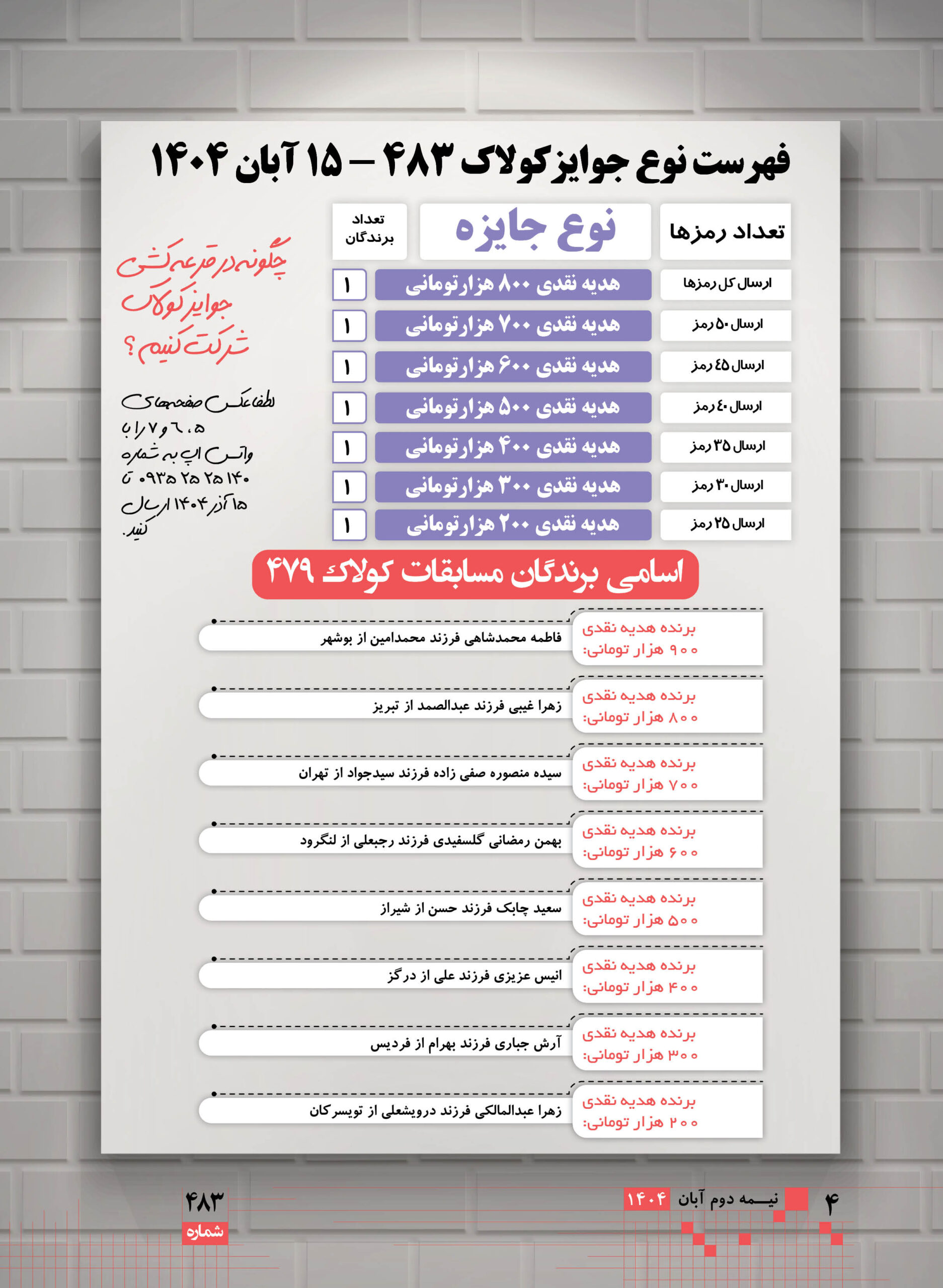 اسامی برندگان کلبه سرگرمی ۴۹۶