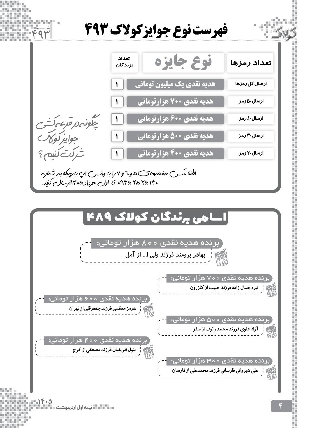 نوع جوایز کولاک 493 - کلبه و کولاک